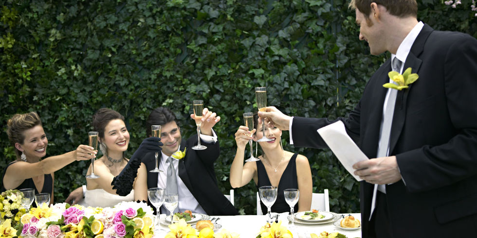 The best man drones on about a singular drunken escapade from college. Then two other groomsmen recount that same less-than-sober experience. The maid of honor cries for a solid six minutes of her toast. And a bridesmaid does a tribute to the couple—in rhyme. The father of the bride gives the family history. And the parents of the groom want in, too. STOP THE MADNESS. Extra guests who want the mic can get their chance at the events leading up to the wedding, or they can be honored some other way.